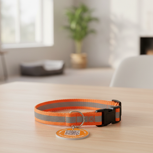 Pet Smart QR Tag With Collar (Pack of 1) (Orange)
